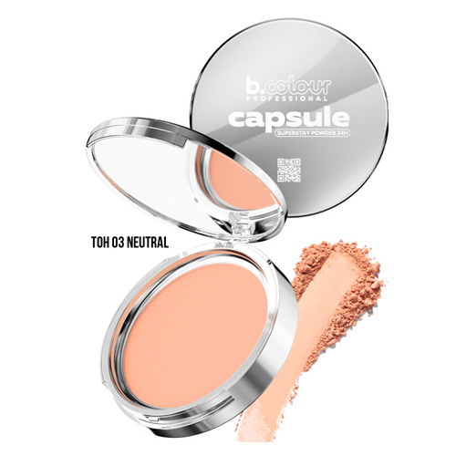 Пудра для лица B.COLOUR PROFESSIONAL 03 Neutral матирующая фиксирует макияж на 24 часа, эффективно устраняет жирный блеск и 100 % маскирует несовершенства: покраснения, воспаления, черные точки, расширенные поры, темные круги под глазами, пигментные пятна, сосудистую сеточку. Подходит для всех типов кожи, даже для чувствительной.