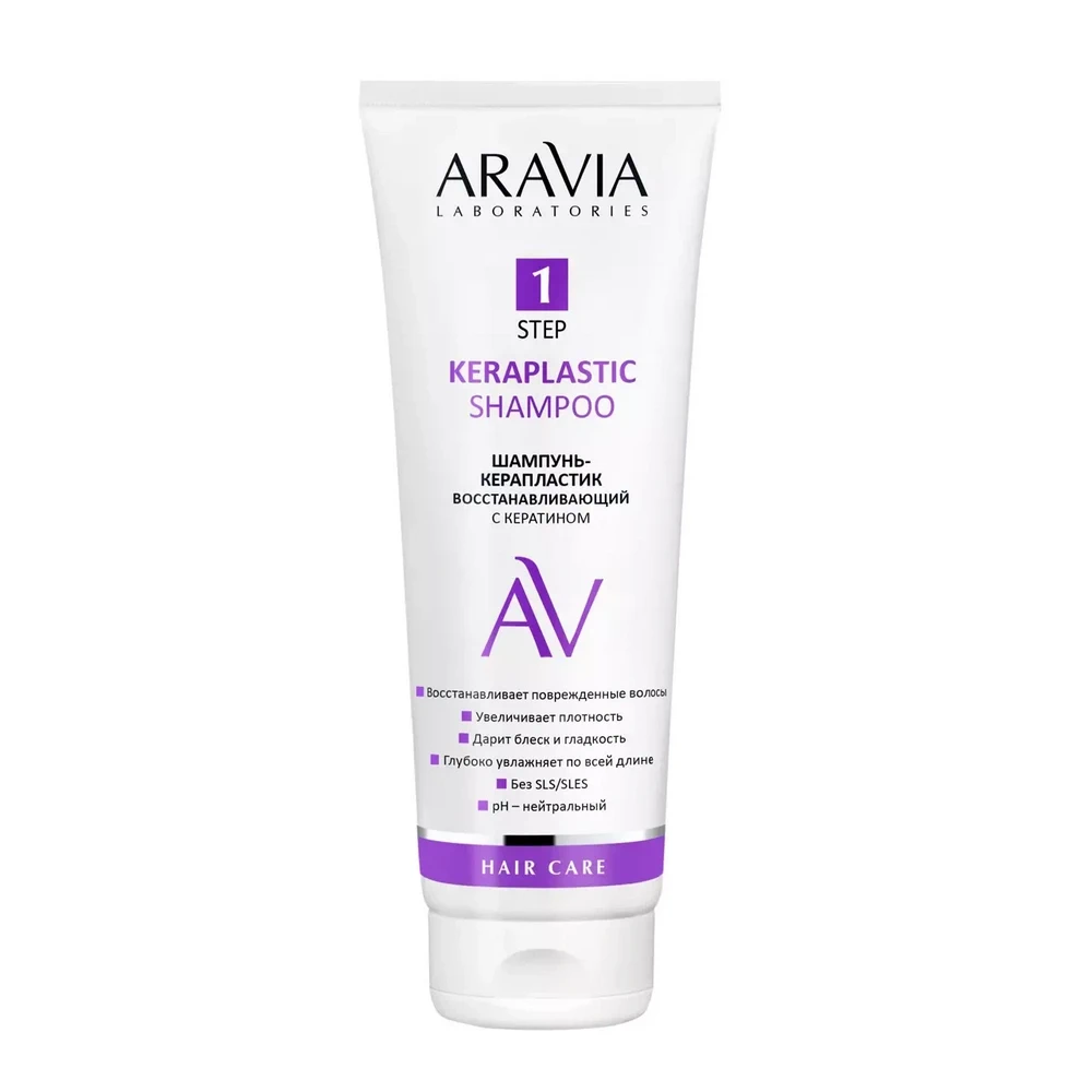 ARAVIA Шампунь-керапластик восстанавливающий с кератином Keraplastic Shampoo — это укрепляющий и восстанавливающий шампунь, обогащённый кератином. Он эффективно очищает волосы, одновременно восстанавливая их структуру и укрепляя каждую прядь. Формула шампуня помогает улучшить упругость и блеск волос, защищает от повреждений и делает волосы мягкими и гладкими. Объем: 250 мл.