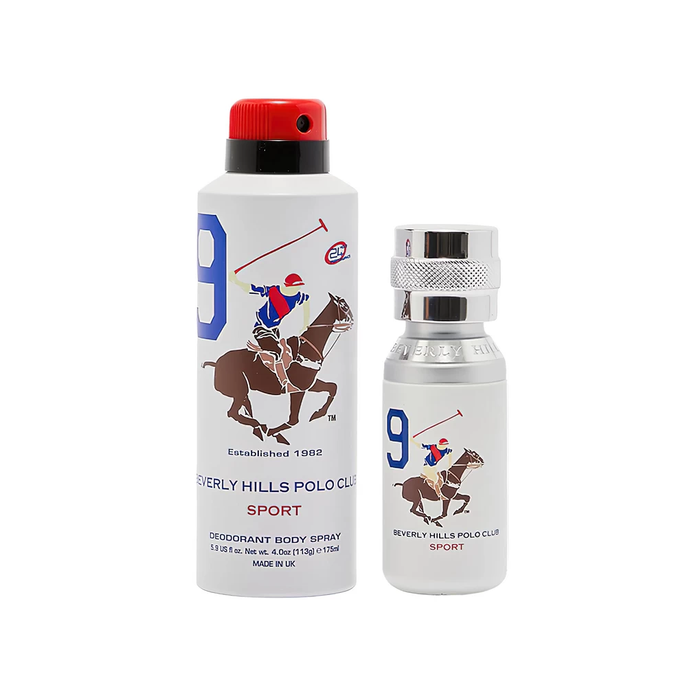 Introducing the Beverly Hills Polo Club Men's No. 9 gift set, a fragrance collection that has made a splash since its debut in 2018. This set, created specifically for the modern man, includes 100 ml of eau de toilette (EDT) and a matching deodorant, each filled with invigorating Essence No. 9. Created with exceptional care and attention to detail by the esteemed Beverly Hills Polo Club design house, this fragrance set is the epitome of sophistication and style.