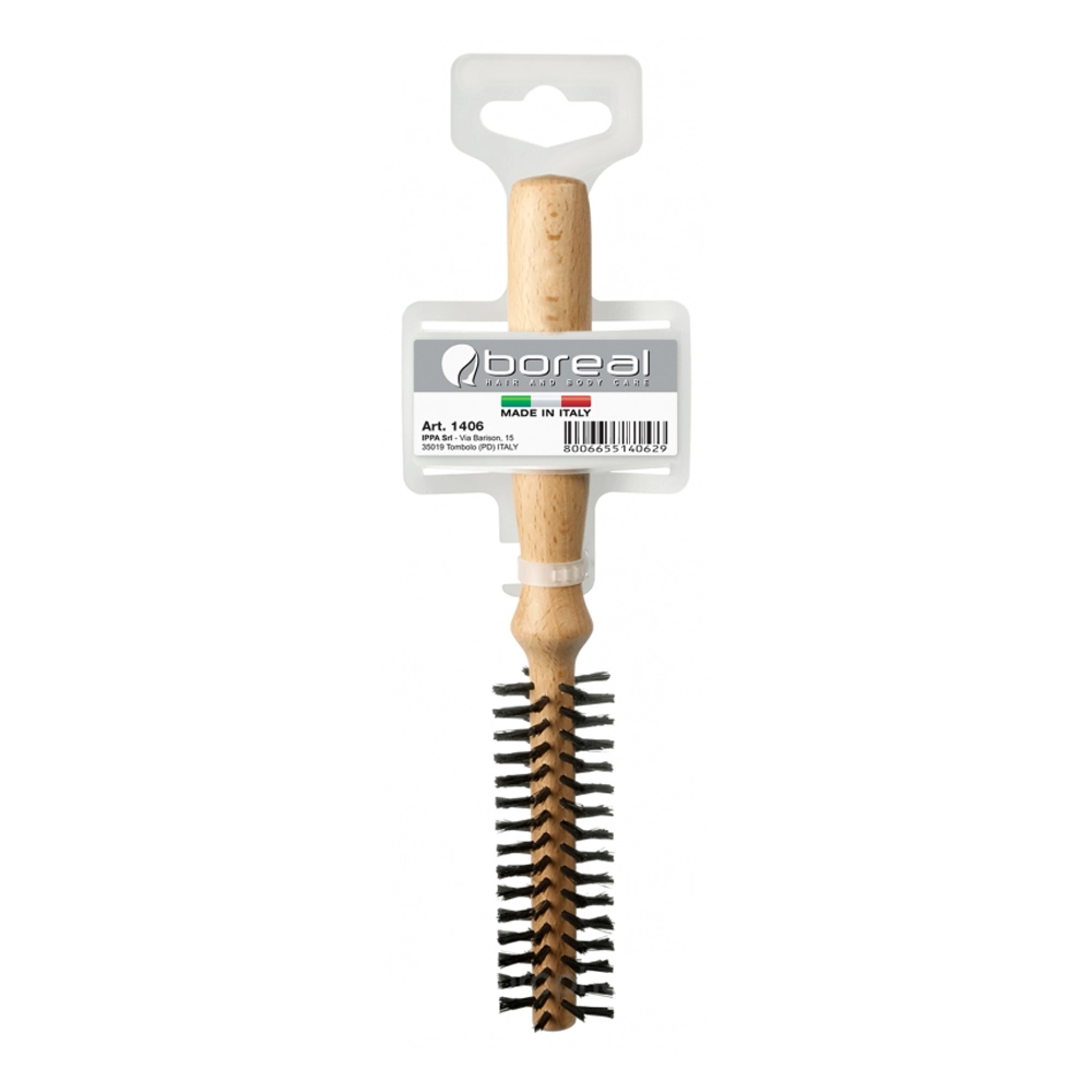 BOREAL Расческа для волос тонкий валик диаметр 12 мм чистая щетина, дисплей с одной вешалкой