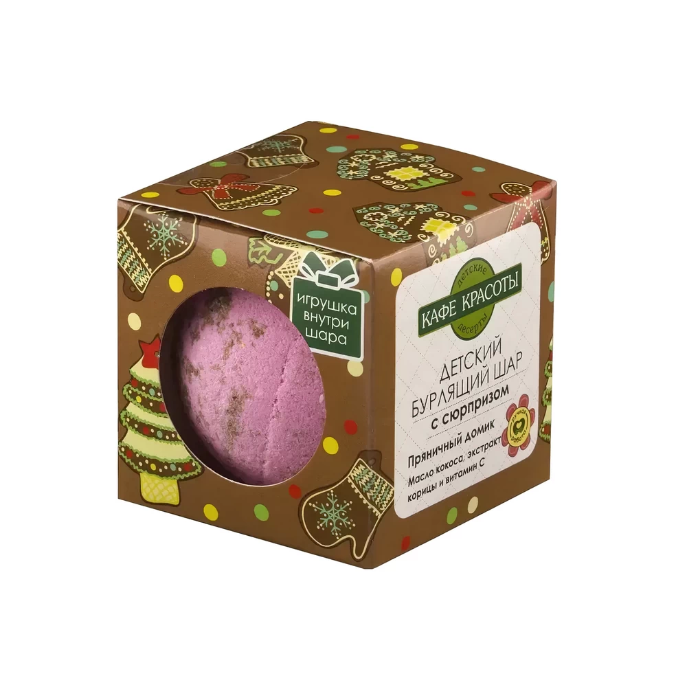 Bubbling bath ball with a surprise "Gingerbread House" 120 g is an aromatic ball that turns ordinary bathing into an exciting spa ritual. Upon contact with water, the balloon hisses and dissolves, saturating the bath with gentle foam and a bright, fruity aroma of mango and orange.