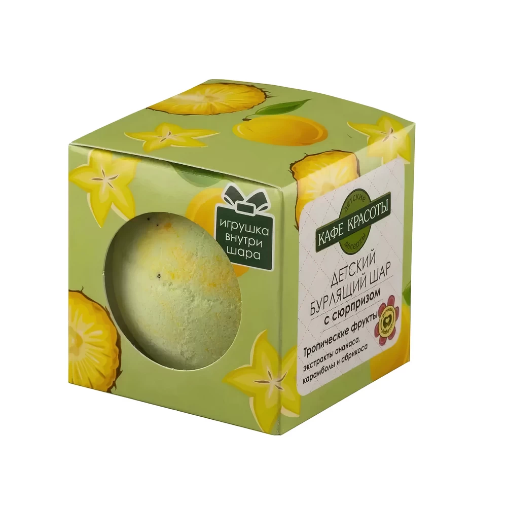 Bubbling bath ball with a surprise "Tropical fruits" 120 g is an aromatic ball that turns ordinary bathing into an exciting spa ritual. Upon contact with water, the balloon hisses and dissolves, saturating the bath with gentle foam and a bright, fruity aroma of mango and orange.