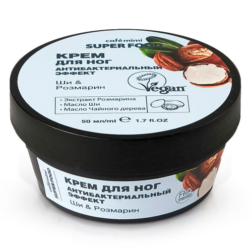 CAFE MIMI Крем для ног Антибактериальный эффект Ши & Розмарин, 50 мл
