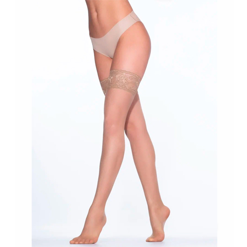 Тонкие эластичные чулки 20 DEN с кружевной каймой на силиконовой основе и невидимым мыском. Состав: 89% ПОЛИАМИД, 11% ЭЛАСТАН