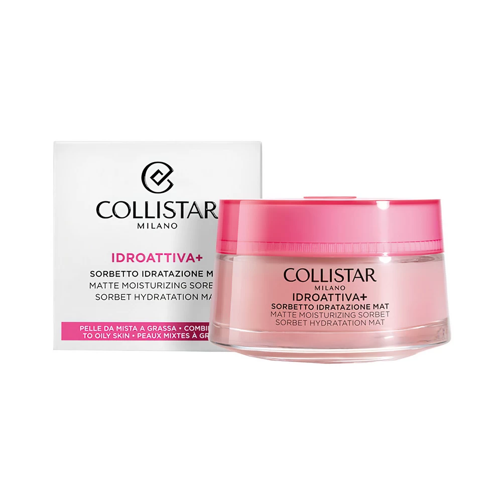 Collistar Idroattiva+ Matte Moisturizing Sorbet is a moisturizing sorbet for the face. The product with a light refreshing emulsion consistency is quickly absorbed without greasiness and stickiness. Sorbet instantly and permanently moisturizes the skin, gives freshness and comfort, strengthens the protective barrier, eliminates stress and signs of fatigue. During the day, it maintains a moisture balance and regulates fat content, making the skin smooth, velvety and well-groomed. Matte Moisturizing Sorbet is suitable as a base for makeup.