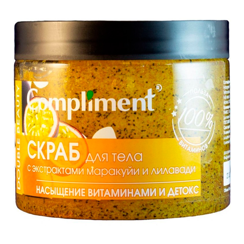 Compliment Double Beauty Скраб для тела с экстрактами маракуйи и лилавади НАСЫЩЕНИЕ ВИТАМИНАМИ И ДЕТОКС, 400мл