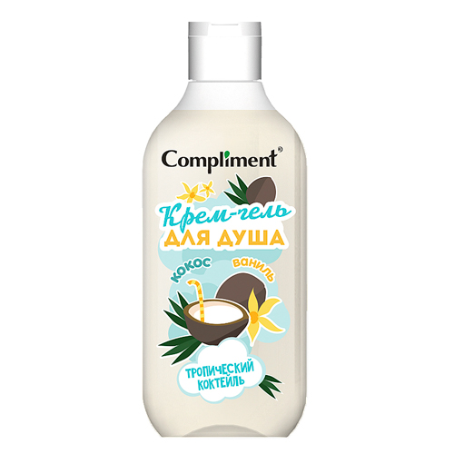 Compliment Крем-гель для душа «Тропический коктейль» Крем-гель для душа с нежным кокосово-ванильным ароматом бережно очищает кожу, придавая ей исключительную мягкость и гладкость. Насыщенная бархатистая формула с увлажняющими компонентами, маслом кокоса и экстрактом ванили ухаживает и восстанавливает кожу, окутывая ее нежным ароматом.