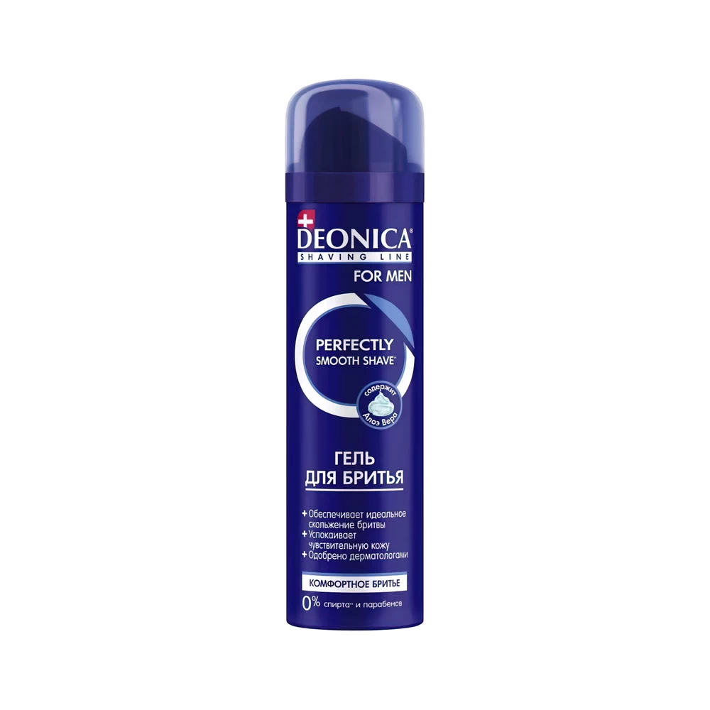 The mild alcohol-free formula of DEONICA FOR MEN "Comfortable Shave" gel, enriched with aloe vera extract and allantoin, gently cares for sensitive skin and helps protect it from irritation during shaving.