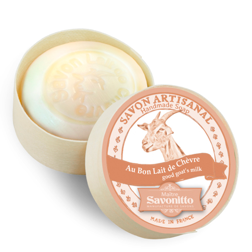 Мыло из козьего молока. Поставляется в деревянной коробке из французского или европейского тополя (маркировка PEFC), обогащенной маслом виноградных косточек. Подходит для хрупкой, сухой и чувствительной кожи. Козье молоко содержит молочную кислоту. Эта мягкая кислота мягко отшелушивает и помогает удалить омертвевшие клетки кожи. Это также может помочь успокоить раздражение, покраснение и воспаление кожи. Богатый витамином А и жирными кислотами, он является отличным увлажняющим средством для кожи. Рекомендуется для атопичной кожи, склонной к экземе или акне. Без парфюма.