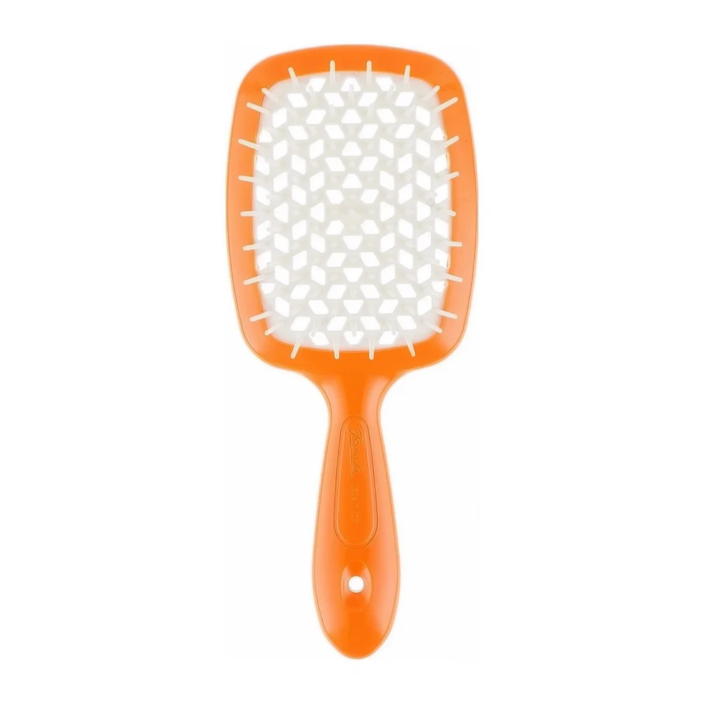 Janeke Superbrush маленькая оранжевая/белая — компактная расческа размером 17,5x7x3 см, идеально подходит для ежедневного ухода за волосами. Обеспечивает легкое распутывание и мягкое разглаживание, предотвращая повреждения и сохраняя естественный блеск волос.