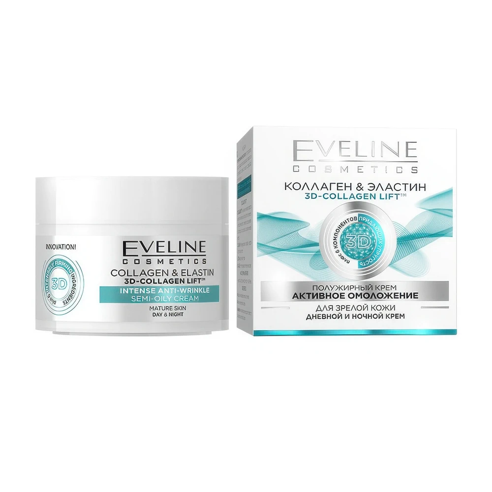 КРЕМ ДЛЯ ЛИЦА EVELINE 3D COLLAGEN LIFT ЭФФЕКТИВНОЕ ОМОЛОЖЕНИЕ 50МЛ
