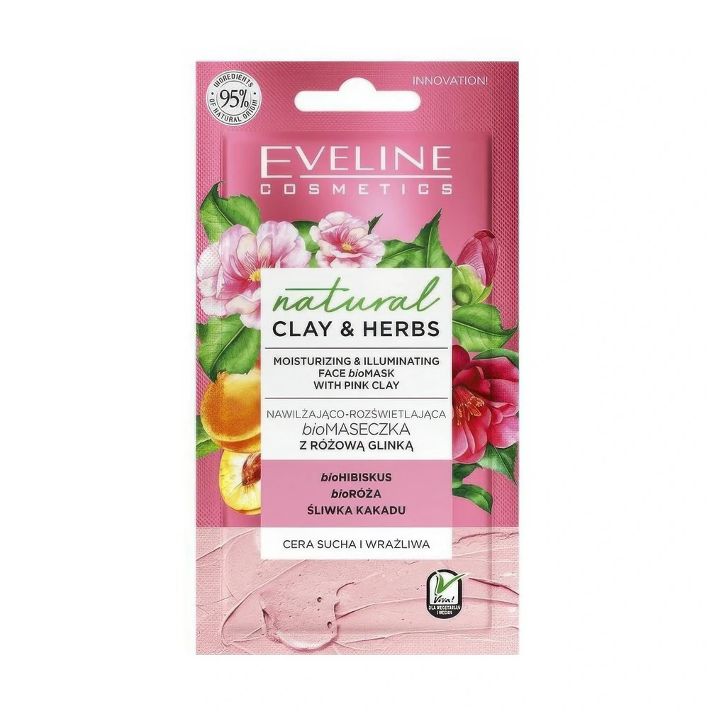 МАСКА ДЛЯ ЛИЦА EVELINE NATURAL CLAY & HERBS РОЗОВАЯ ГЛИНА 8МЛ