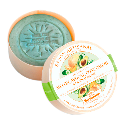 MELON-AVOCADO-CUCUMBER Мыло ДЫНЯ-АВОКАДО-ОГУРЕЦ + отшелушивающая зеленая люффа 100g