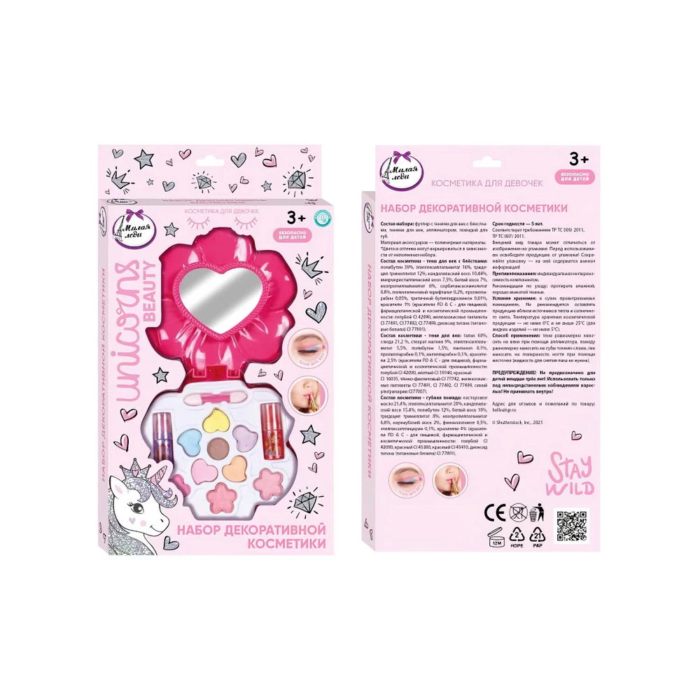 Девочки в любом возрасте хотят быть красивыми. Специально для юных модниц был разработан этот набор, состоящий из теней для век и помады для губ в красивом футляре. Маленькая принцесса обязательно оценит красочные цвета и модную упаковку с милым единорогом. Развивайте чувство стиля и вкуса, учите девочку создавать свой неповторимый образ вместе с косметикой ТМ «Милая леди».