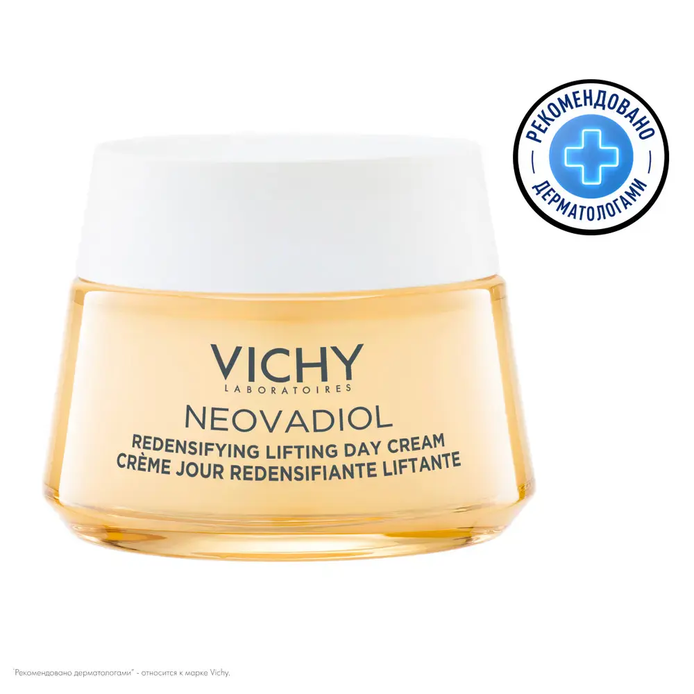 Наука об экспозом-факторах: С появлением первых признаков менопаузы в организме женщины происходит перестройка, которая влияет на её внешний вид, ускоряя процессы старения. В этот период снижается синтез коллагена, ухудшается работа сальных желез, кожа теряет плотность. Инновация* от VICHY: Лаборатория VICHY разработала крем, соединяющий активные ингредиенты – вулканическую воду VICHY, обогащенную 15 минералами, проксилан, экстракт Кассии и гиалуроновую кислоту натурального происхождения. Крем компенсирует видимые признаки менопаузы на коже и обладает целенаправленным действием на восстановление плотности, сокращение морщин и повышение четкости контуров лица. * Среди продуктов VICHY.