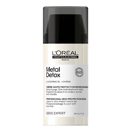 Несмываемый крем L'Oreal Professionnel Metal Detox с двойной защитой от ломкости волос и искажения оттенка. Как работает: Крем Metal Detox Professional High Protection Cream снижает ломкость волос и защищает от искажения цвета после окрашивания. Содержит гликоамин в концентрации 1% – он удаляет избыток частиц металла водопроводной воды, которые влияют на яркость оттенка. УФ-фильтр защищает волосы от выцветания и повреждений на солнце. Крем обладает термозащитой до 230°С, придает локонам очерченность и защищает от образования завитков. Увлажняет на 72 часа. Волосы остаются мягкими и в 6 раз более дисциплинированными. На 87% меньше ломкости. Роскошный аромат, в сердце которого ноты грейпфрута и лемонграсса – их дополняют бергамот, лимон и амбра, обволакивает и настраивает на позитивный лад. Подходит для волос любого типа и текстуры, окрашенных, поврежденных, осветленных или натуральных.