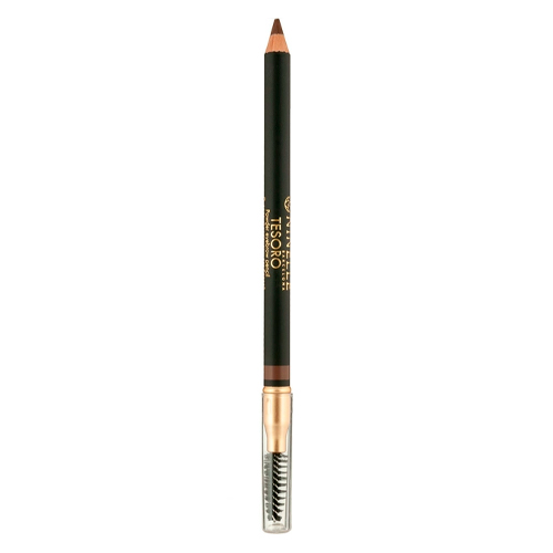 Карандаш Tesoro — настоящее сокровище для ваших бровей! Стойкий пудровый карандаш с бархатистым покрытием легко наносится и держится даже на жирной коже. Высокопигментированная формула с витамином Е и альгином, без минеральных масел и парабенов, ухаживает за волосками бровей и позволяет сохранять яркость цвета в течение дня. Карандаш снабжен щеточкой, которой очень удобно распределять текстуру и расчесывать брови.