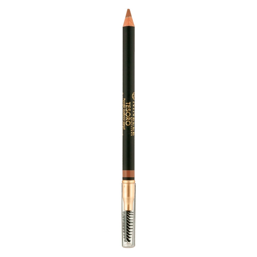 Карандаш Tesoro — настоящее сокровище для ваших бровей! Стойкий пудровый карандаш с бархатистым покрытием легко наносится и держится даже на жирной коже. Высокопигментированная формула с витамином Е и альгином, без минеральных масел и парабенов, ухаживает за волосками бровей и позволяет сохранять яркость цвета в течение дня. Карандаш снабжен щеточкой, которой очень удобно распределять текстуру и расчесывать брови.