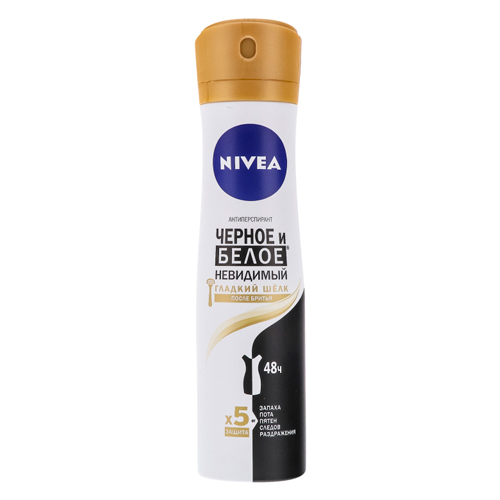 Черно-белый лук считаете самым эффектным, но боитесь столкнуться с проблемой желтых или белых пятен? Прочь все сомнения! Эффективный антиперспирант-спрей "Черное и Белое Невидимый гладкий шелк" от известного бренда NIVEA поможет чувствовать себя уверенно в течение всего дня. Средство образует невидимый щит, который уменьшает потливость, а также защищает кожу от сухости и воспалений. Антиперспирант-спрей не оставляет следы на одежде, благодаря чему вы можете смело надевать белые рубашки, черные шелковые блузы и футболки. Средство образует на коже легкий аромат, который останется с вами на протяжении 48 часов.