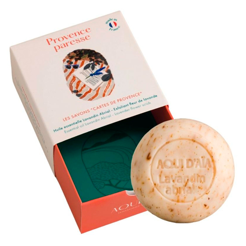 PROVENCE IDLENESS Lavandin Abrial BIO + exfoliating Lavender Flower Round 100g Мыло ПРОВАНС Lavandin Abrial BIO + пилинг с цветок лаванды