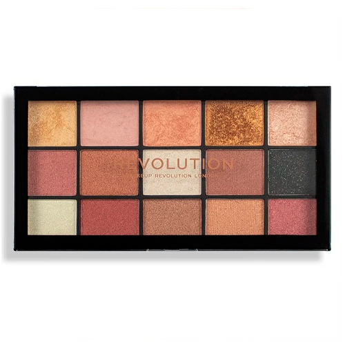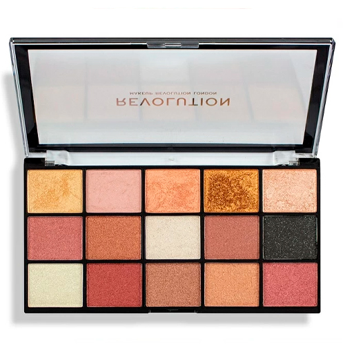 Палетка теней для век Revolution Reloaded Palette Affection. 15 интенсивных оттенков, шелковистых и легко смешивающихся пигментов, Affection это смесь теплых тонов позолоты и бордо, а также глубокий блестящий черный добавляющий драматизма.