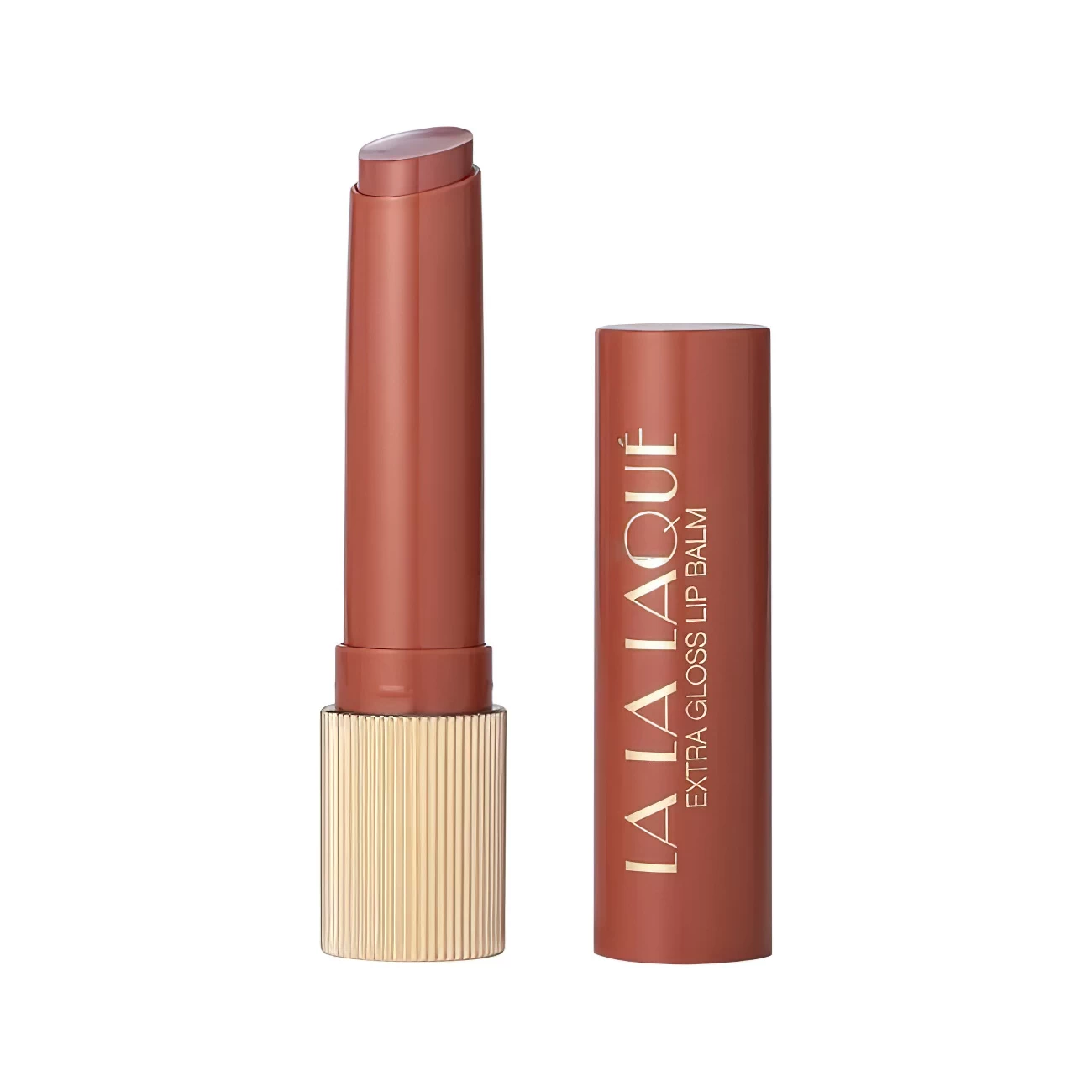 There are eight tones in the palette, from pink to brown, that are suitable for every day. LA LA LAQUE is packaged in a stick with a ribbed golden base and a lid to match the lipstick-balm.