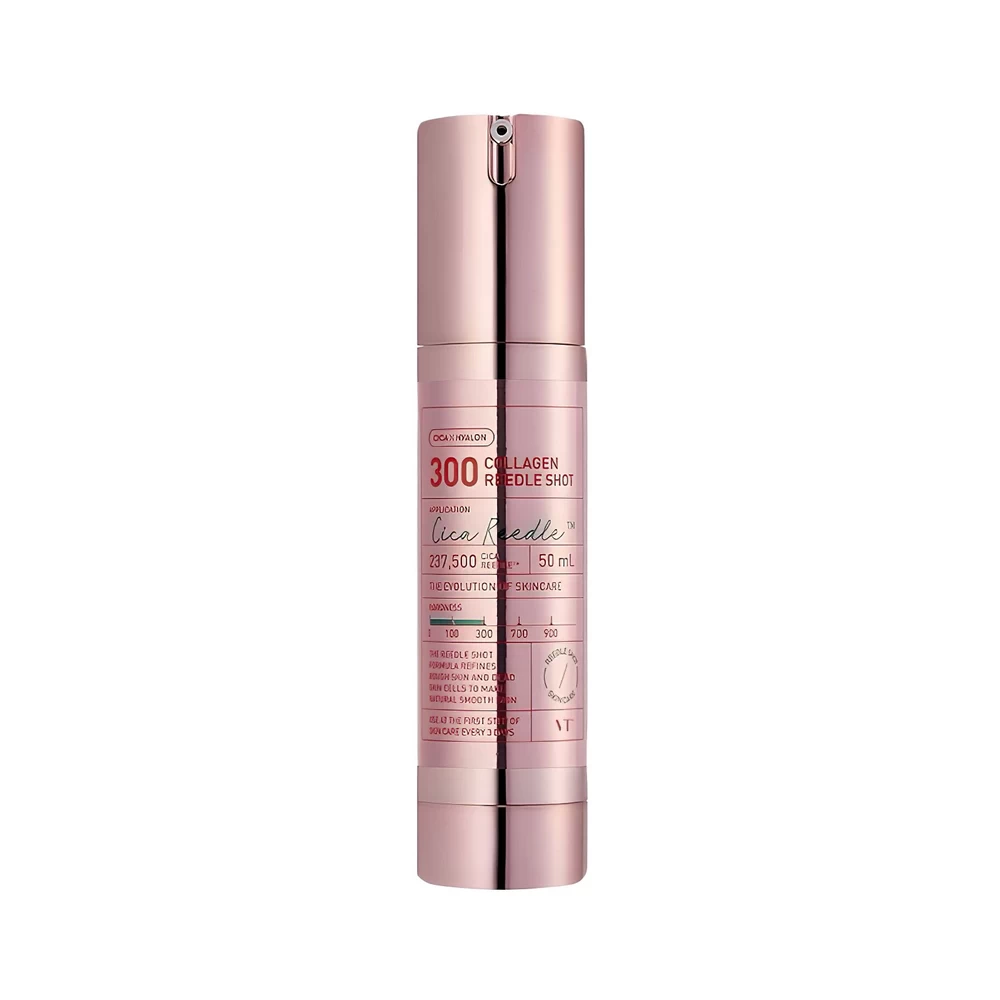 Supple, beautiful skin with flawless color is the result of using the VT Cosmetics Collagen Reedle Shot 300 booster.