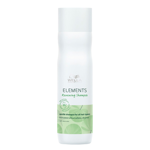 Wella Elements Renewing Shampoo - Обновляющий шампунь. Без сульфатов и силиконов. Восстанавливает водный баланс в волосах и увлажняет их от корней до концов. Обновляющий шампунь возвращает ломким сухим волосам естественную влагу и препятствует их повреждению. Для окрашенных и/или подверженных стрессу волос. Содержит натуральные экстракты.