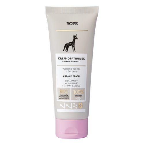 YOPE восстанавливающий и успокаивающий крем-повязка для рук с ароматом сливочного персика, объемом 50 мл, предназначен для интенсивного ухода за кожей рук. Уникальная формула крема обогащена увлажняющими и питательными компонентами, которые помогают восстановить и смягчить сухую и раздраженную кожу. Крем быстро впитывается, не оставляя жирной пленки, и придает рукам ощущение комфорта и мягкости. Подходит для ежедневного использования, обеспечивая длительное увлажнение и защиту.