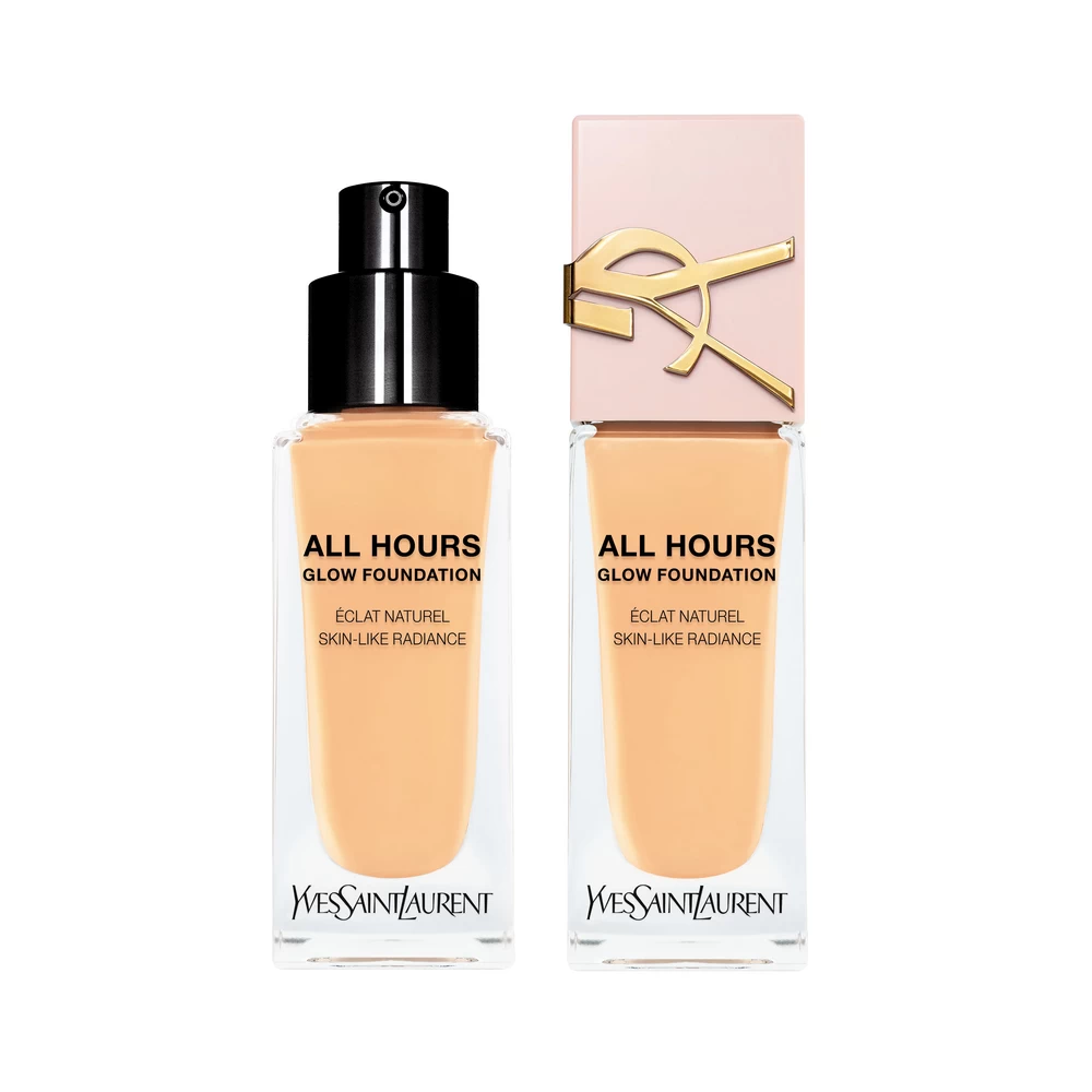 Yves Saint Laurent's All Hours Glow Foundation Foundation is designed to provide radiance, comfort and perfection throughout the day. Inspired by highly effective skin care products, its innovative formula combines even coverage and long-lasting hydration, giving skin a natural, fresh and radiant appearance. Ideal for those who strive for flawless skin without the effect of a mask, this foundation easily adapts to various makeup styles, from the most restrained to the most refined.