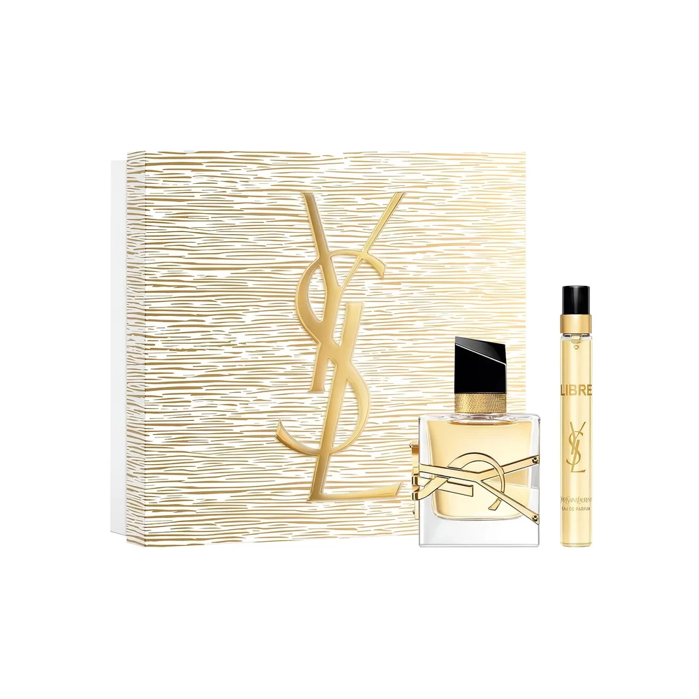 This Christmas, celebrate the bold, feminine spirit of Yves Saint Laurent Libre with this exclusive frosted gold Christmas set. This luxurious set of 30 ml and 10 ml bottles of perfume water combines the floral freshness of French lavender with the sensuality of Moroccan orange blossom. Created for women who value freedom and elegance, Libre embodies the essence of modern femininity with its persistent, refined fragrance.