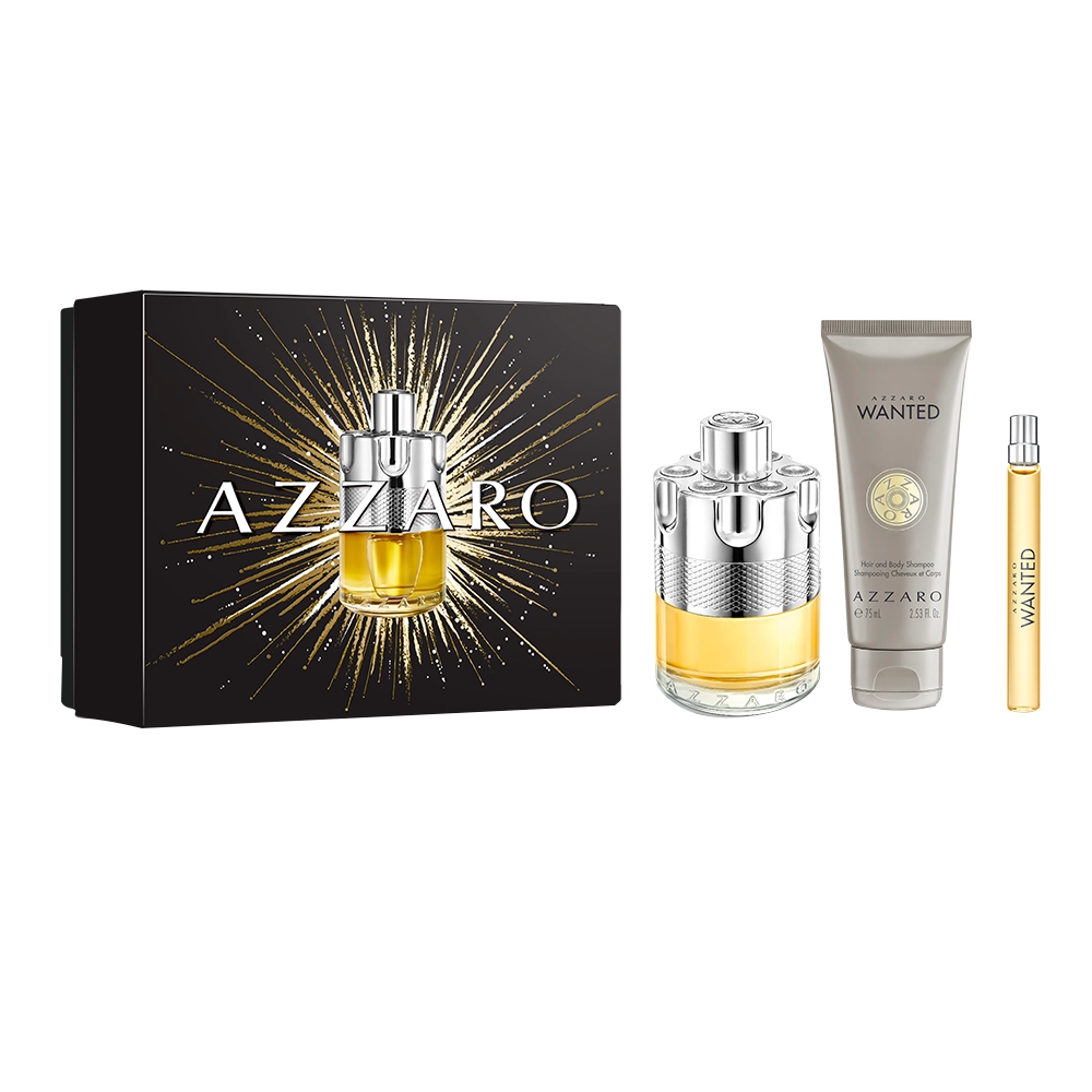 В этом подарочном наборе бренда Azzaro есть два разных по объему флакона туалетной воды Wanted. Большой флакон украсит домашнюю коллекцию мужчины, миниатюру удобно брать с собой. Также в сет вошел универсальный гель-шампунь для душа с тем же названием, что и туалетная вода, и с таким же волшебным древесно-пряным ароматом. Он излучает привлекательную чувственность и создан для соблазнителей и авантюристов, всегда готовых к рискованным приключениям.