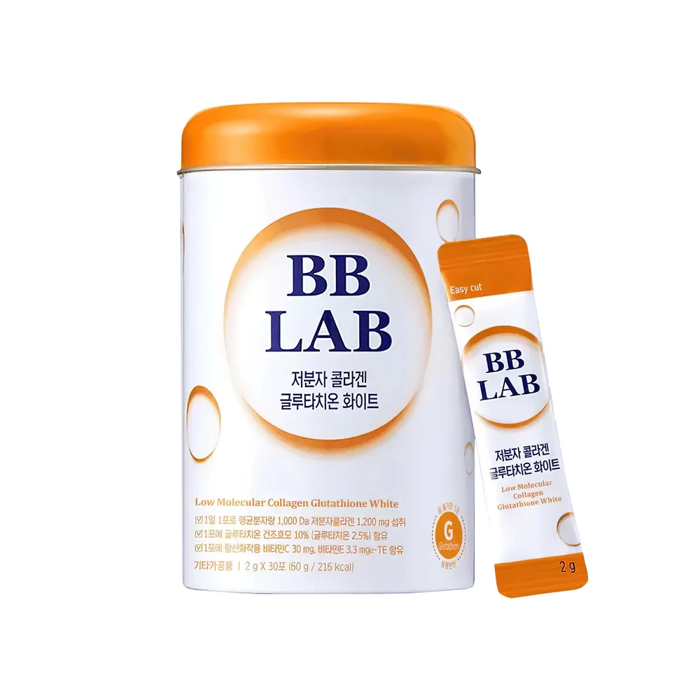 BBLAB Low Molecular Collagen Glutathione White — это порошковый коллаген в саше-пакетах (2 г), созданный корейским брендом BB LAB. Он содержит низкомолекулярный морской (рыбный) коллаген с высокой степенью усвояемости, а также глутатион и антиоксиданты в одной формуле. Упаковка рассчитана на 30 дней приема — по одному пакетику в день.