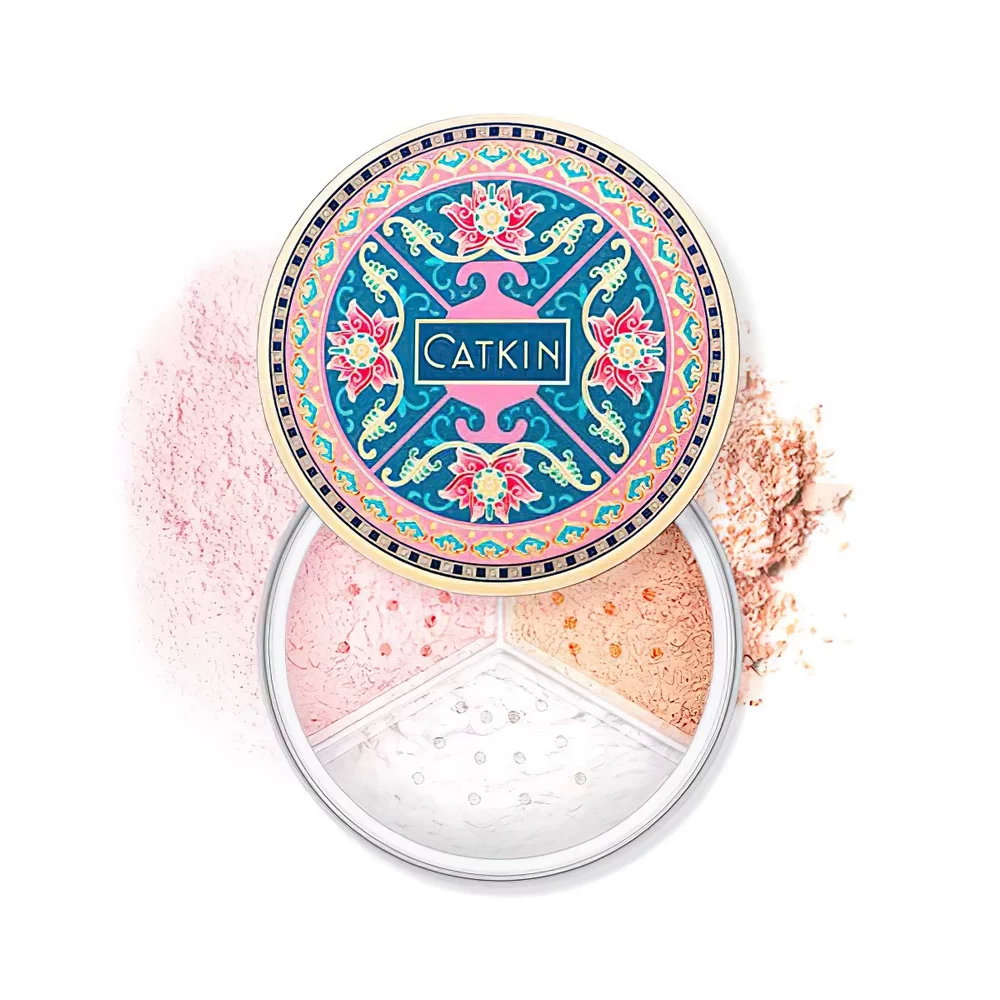 CATKIN 3-COLORS LOOSING FINISHING POWDER Рассыпчатая пудра с лотосом C02 Matte - это ультрафинная рассыпчатая пудра с матовым эффектом. Она содержит экстракт лотоса, который способствует смягчению и увлажнению кожи, при этом контролирует жирность. Пудра обеспечивает долговременное фиксирование макияжа, создавая естественное и матовое покрытие. Идеально подходит для завершения макияжа и коррекции тонких недостатков кожи.