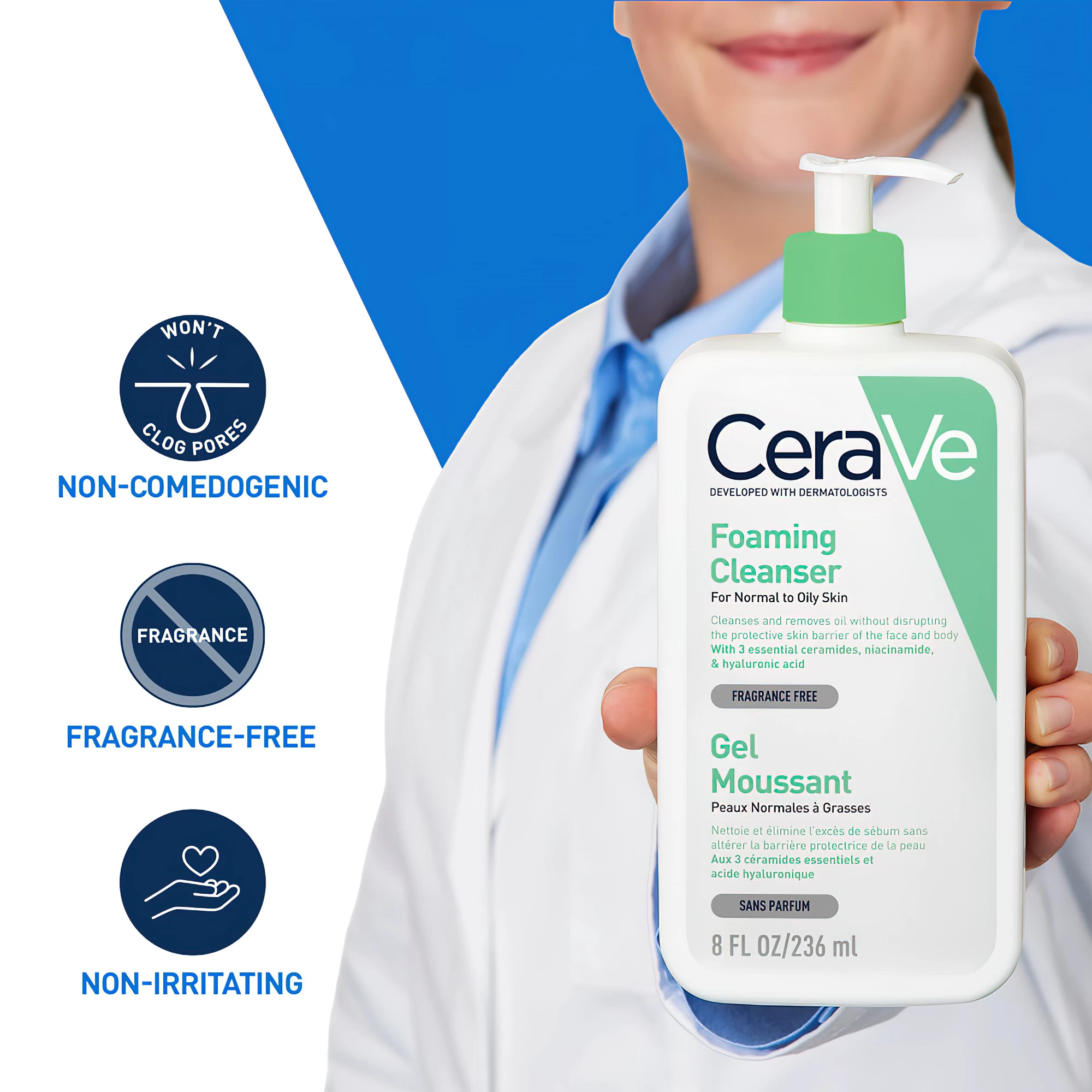 CeraVe Очищающий гель для кожи склонной к жирности интенсивно очищает, удаляя излишки кожного сала, загрязнения и макияж.