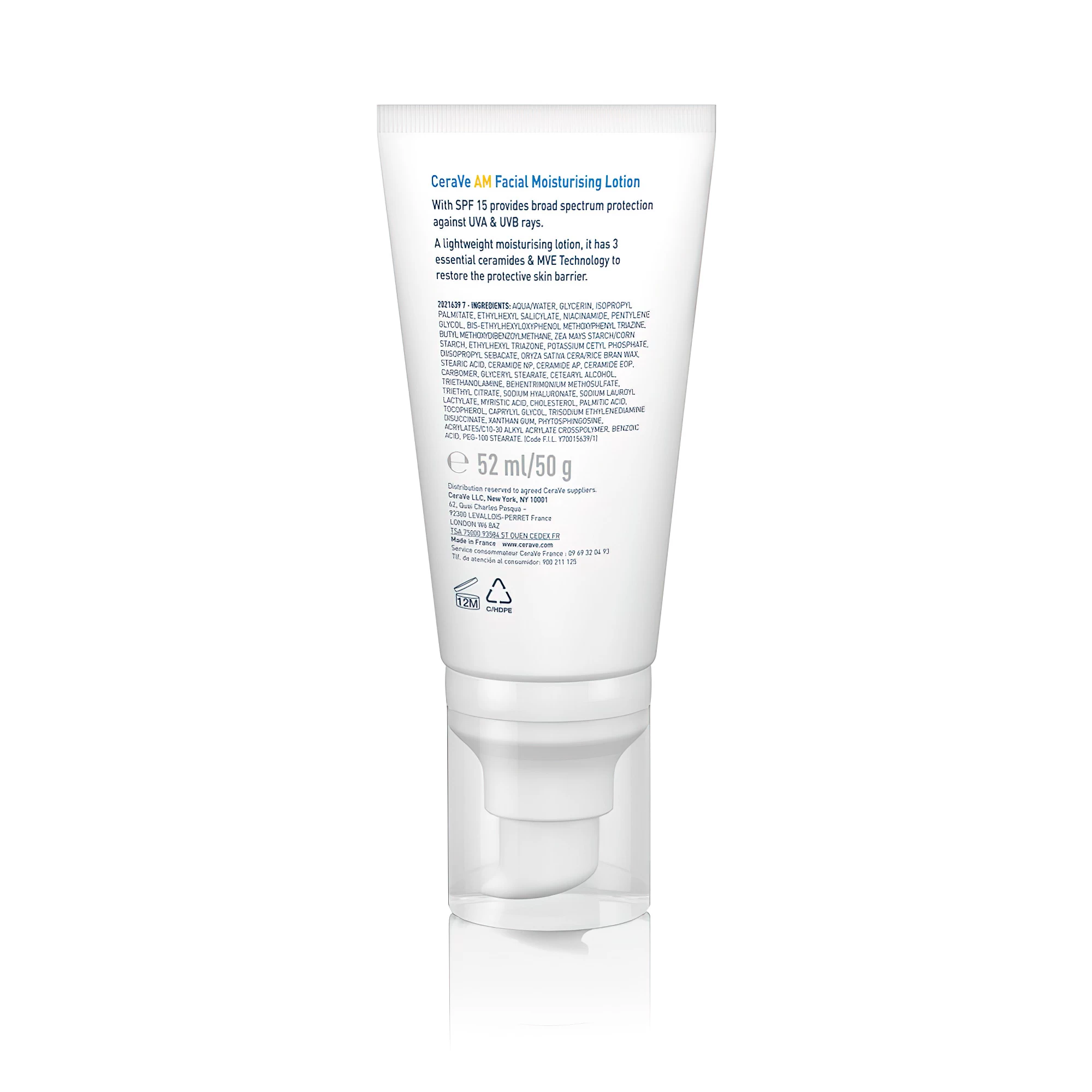 Увлажняющий лосьон для лица CeraVe AM SPF30 — легкий увлажняющий крем, подходит для всех типов кожи для ежедневного использования. Увлажняющий лосьон, обогащенный SPF30 и 3 незаменимыми керамидами, обеспечивает защиту широкого спектра от лучей UVA/UVB, сохраняет влагу до 24 часов и помогает восстановить барьерную функцию кожи. Также подходит для чувствительной кожи.