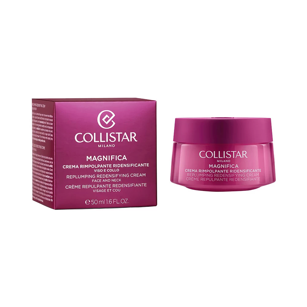 Collistar Magnifica Replumping Redensifyng Cream Face And Neck — антивозрастной крем для лица и шеи. Культовый бьюти-продукт с обновленной, еще более эффективной формулой и насыщенной, тающей консистенцией. Он восстанавливает структуру кожи, повышает ее упругость и эластичность, укрепляет естественный защитный барьер.
