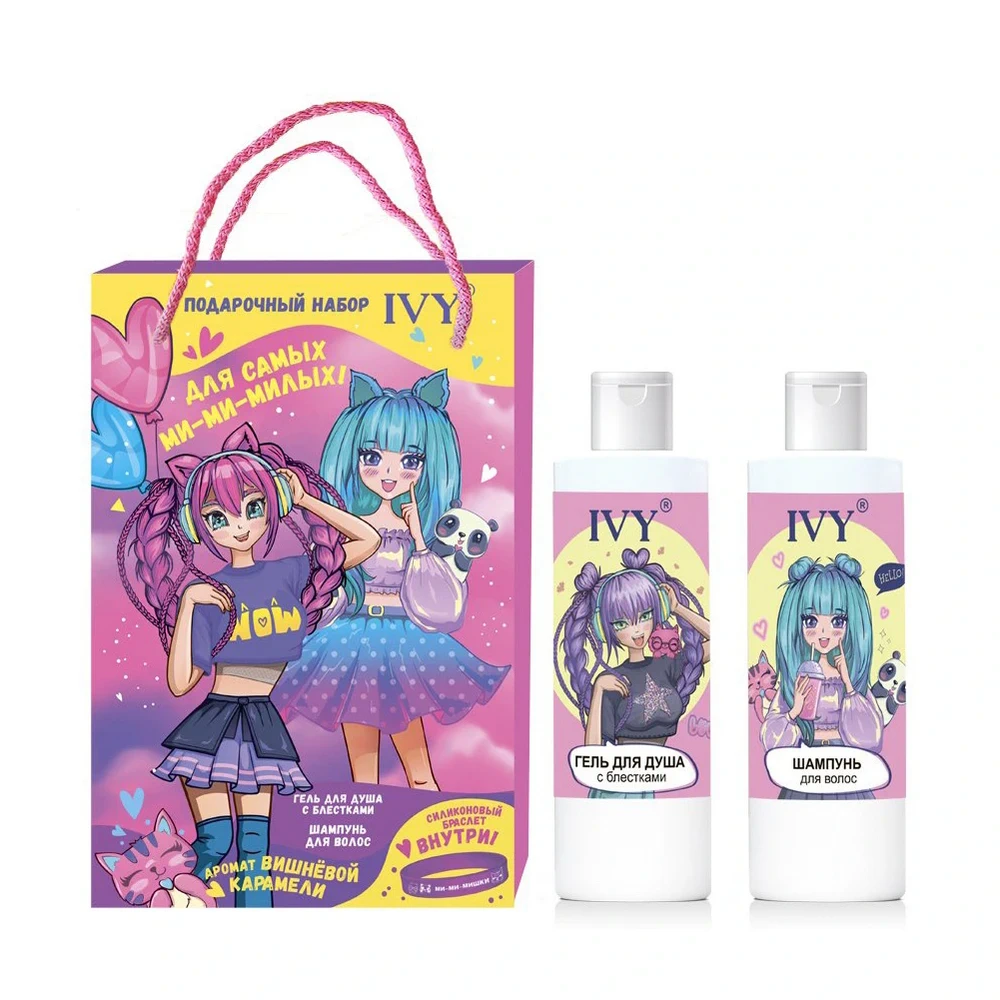 Compliment IVY ПН №1192 Вишневая карамель (Шампунь, 200мл+Гель для душа, 200мл+браслет силиконовый)