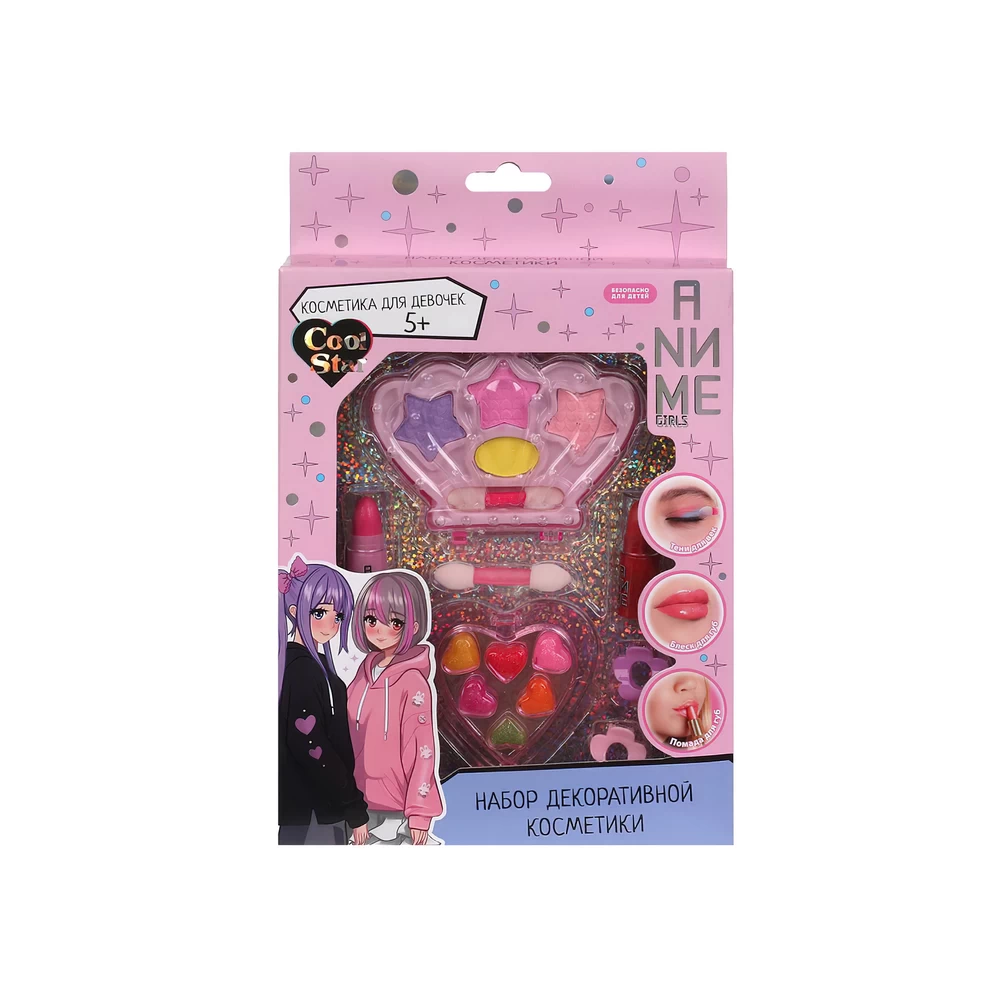 Девочки в любом возрасте хотят быть красивыми. Специально для юных модниц был разработан этот набор декоративной косметики, состоящий из теней для век в красивом футляре, помады, блеска для губ и стильных аксессуаров для волос. Маленькая принцесса обязательно оценит яркие цвета и модную упаковку с милыми персонажами в стиле аниме. Развивайте чувство стиля и вкуса, учите девочку создавать свой неповторимый образ вместе с косметикой ТМ «Cool Star».