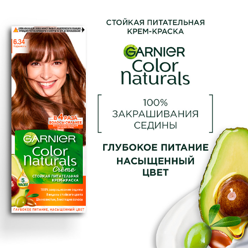 Garnier Стойкая питательная крем-краска для волос Color Naturals, оттенок 6.34, Карамель