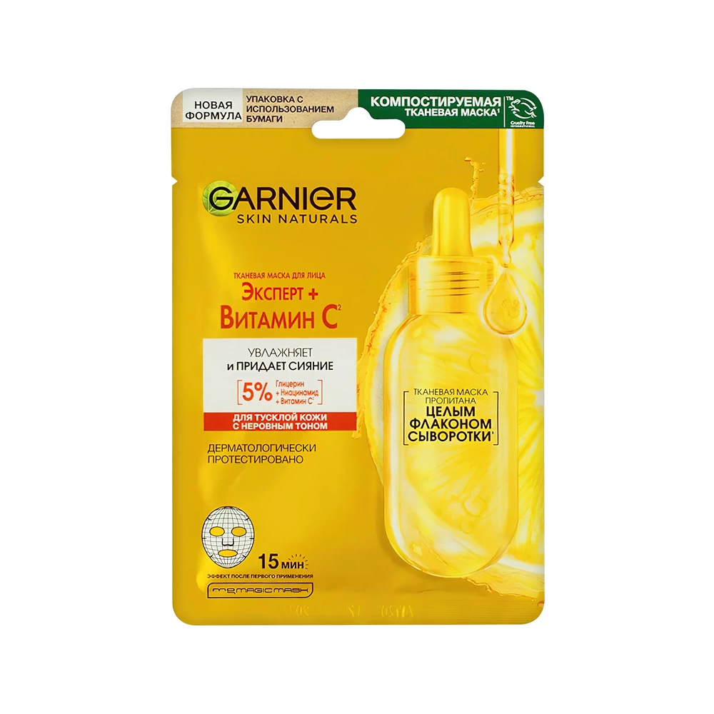 Маска тканевая Garnier Skin Naturals Увлажнение Витамин С интенсивно увлажняет кожу, питает и смягчает ее.