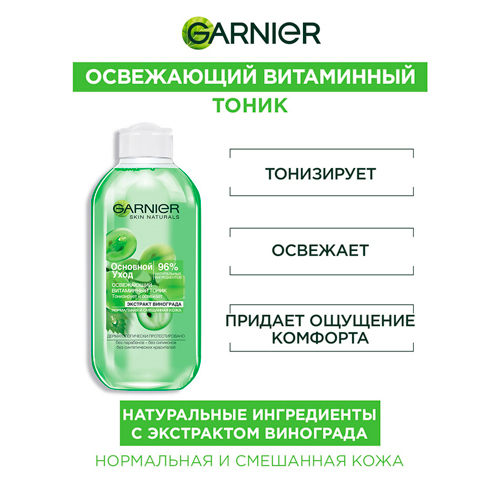 Garnier Тоник для лица "Основной уход, Экстракт Винограда", освежающий, для нормальной и смешанной кожи, 200 мл