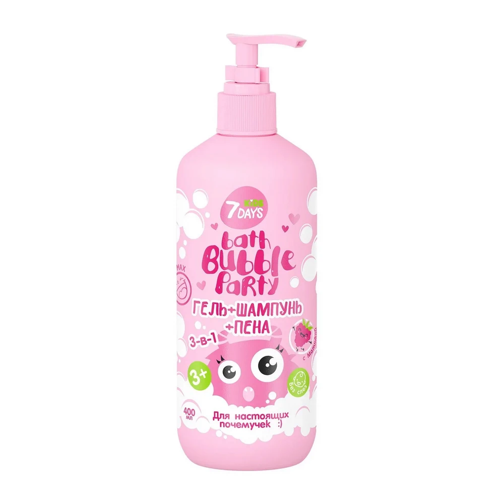 Гель+шампунь+пена 3-в-1 ДЛЯ НАСТОЯЩИХ ПОЧЕМУЧЕК с Малинкой BATH BUBBLE PARTY, 7DAYS, 400 мл (24 до 01.11.26)