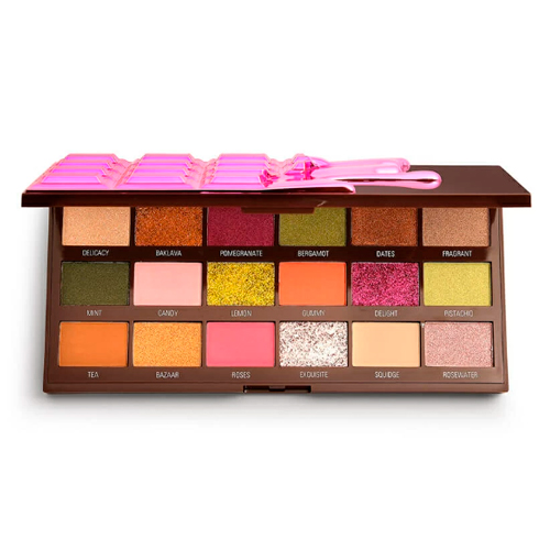 Ах, рахат-лукум моих глаз, щербет моего сердца! Под "шоколадной" крышкой палетки I Heart Revolution Turkish Delight Chocolate скрываются 18 матовых и сияющих оттенков для обольстительного макияжа: ярко-розовые и оранжевые, желтые и зеленые тона дополнены роскошным золотом и нежными нюдами.