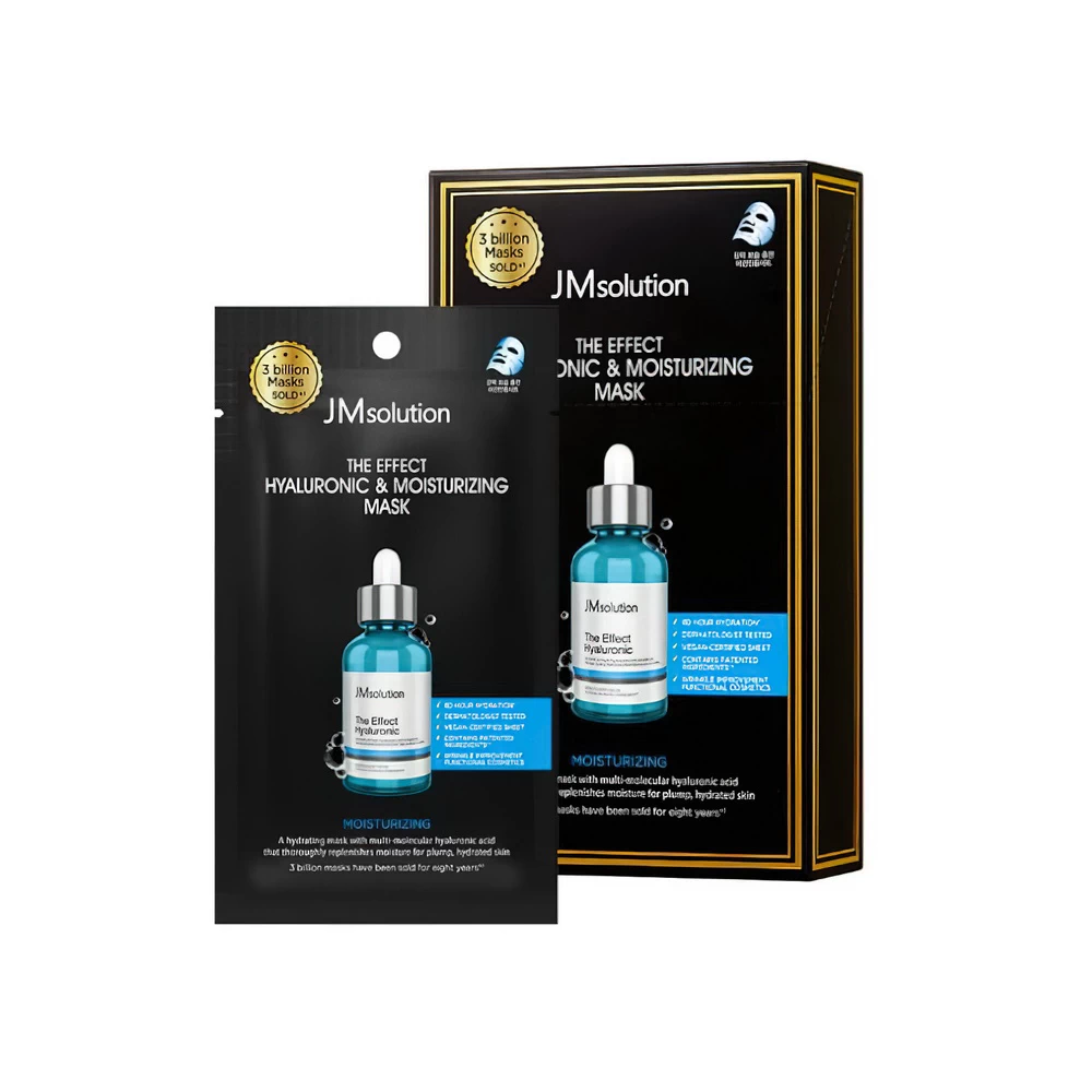 Интенсивно увлажняющая тканевая маска с гиалуроновой кислотой JMsolution The Effect Hyaluronic & Moisturizing Mask моментально насыщает кожу влагой, восстанавливает эластичность и дарит ощущение комфорта. Гиалуроновая кислота разных молекулярных весов работает на всех уровнях кожи, создавая эффект объемного увлажнения.