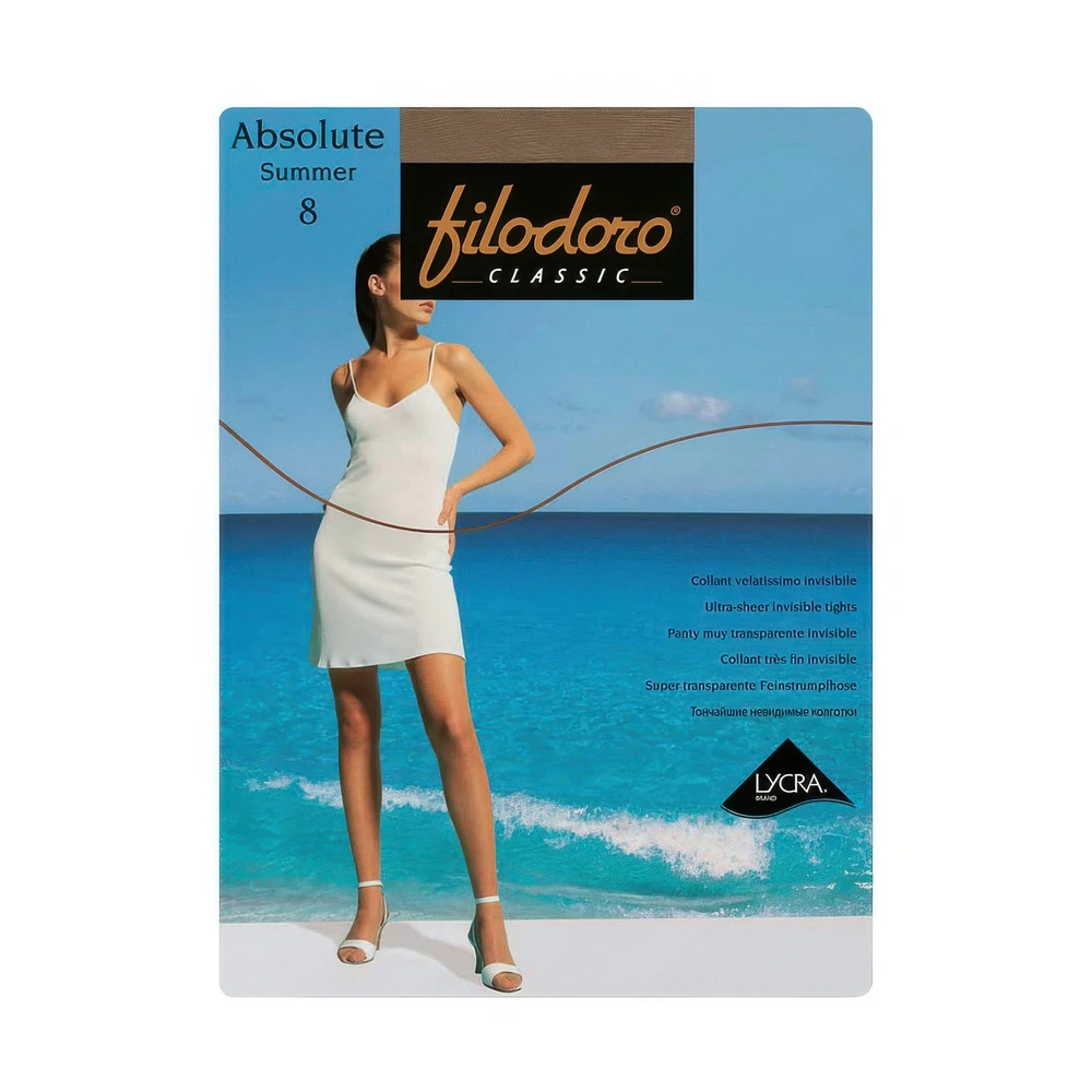 Колготки женские FILODORO ABSOLUTE SUMMER 8 den - тончайшие эластичные колготки, однородные по всей длине, без шортиков. Удобные швы создают дополнительный комфорт, а невидимый усиленный мысок идеально сочетается с открытой обувью – босоножками, туфлями и балетками. Женские колготки FILODORO ABSOLUTE SUMMER 8 den - ультра легкие, смотрятся естественно и практически незаметны на ноге. Они гармонично дополняют любой образ и прекрасно сочетаются с юбками, шортами и платьями. Прекрасно подойдут для офиса, на каждый день, для праздника женщине, девушке или девочке подростку. Легкий шелковистый эффект оригинально смотрится и подчеркивает красоту ног.
