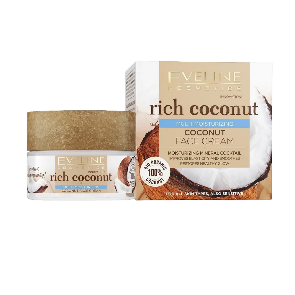 КРЕМ ДЛЯ ЛИЦА EVELINE RICH COCONUT ИНТЕНСИВНО УВЛАЖНЯЮЩИЙ КОКОСОВЫЙ ДЛЯ ВСЕХ ТИПОВ КОЖИ ВТЧ ДЛЯ ЧУВС