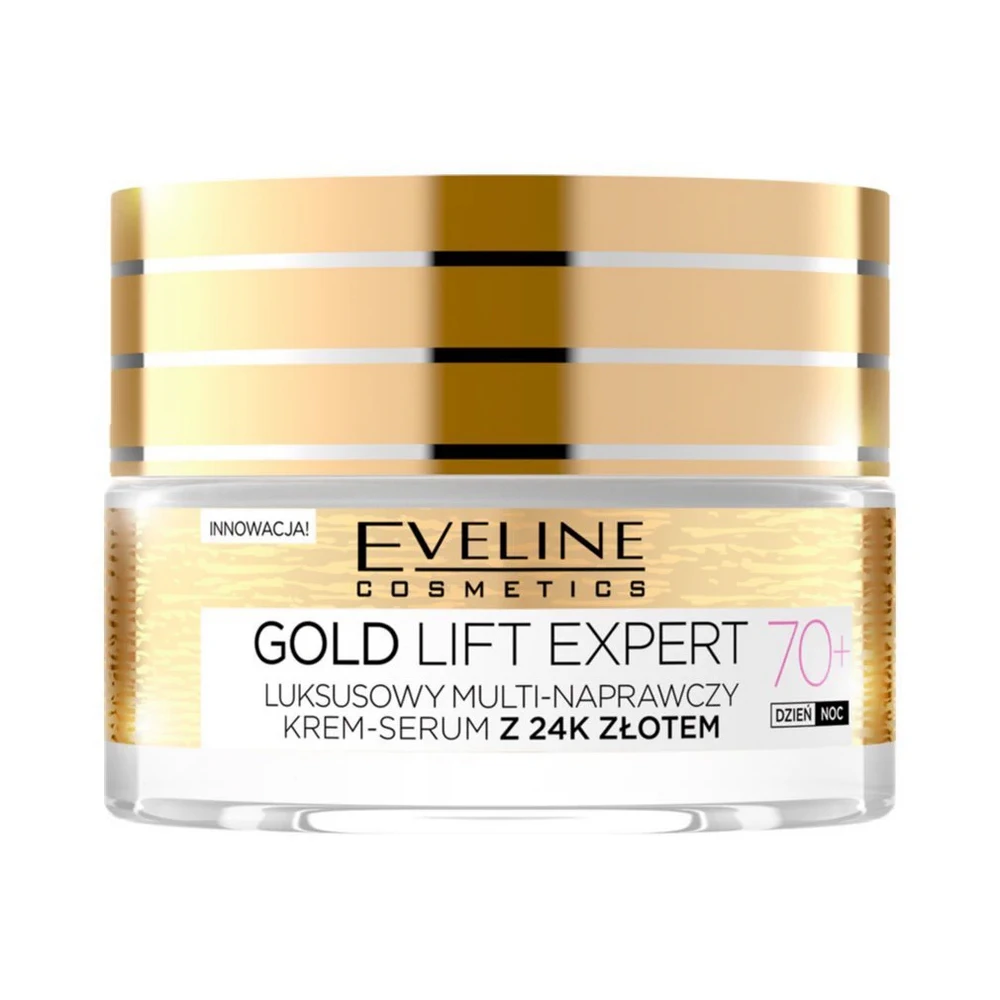 КРЕМ-СЫВОРОТКА ДЛЯ ЛИЦА EVELINE GOLD LIFT EXPERT 70+ 24К ЗОЛОТА УЛЬТРАВОССТАНАВЛИВАЮЩИЙ ДНЕВНОЙ/НОЧН