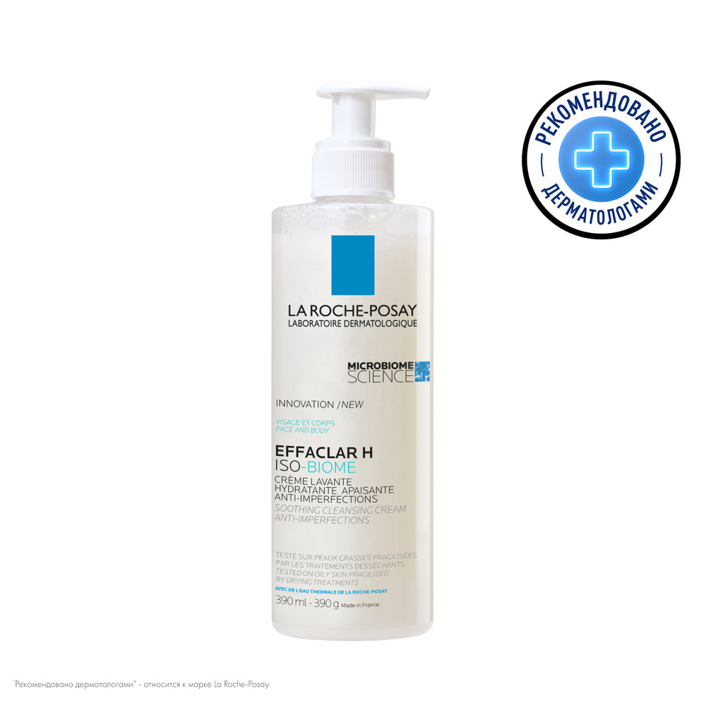 Успокаивающий очищающий крем-гель против несовершенств EFFACLAR H ISO-BIOME предназначен для проблемной кожи ослабленная и чувствительная в результате использования пересушивающих средств для борьбы с акне. Эксклюзивный активный компонент Aqua Posae Filiformis в средствах LA ROCHE-POSAY помогает регулировать микробиом кожи, сохраняя на ее поверхности полезные бактерии. Бренд входит в дивизион активной косметики международной Группы L?Oreal: La Roche-Posay (Ля Рош Позе), CeraVe (Цераве) и др.