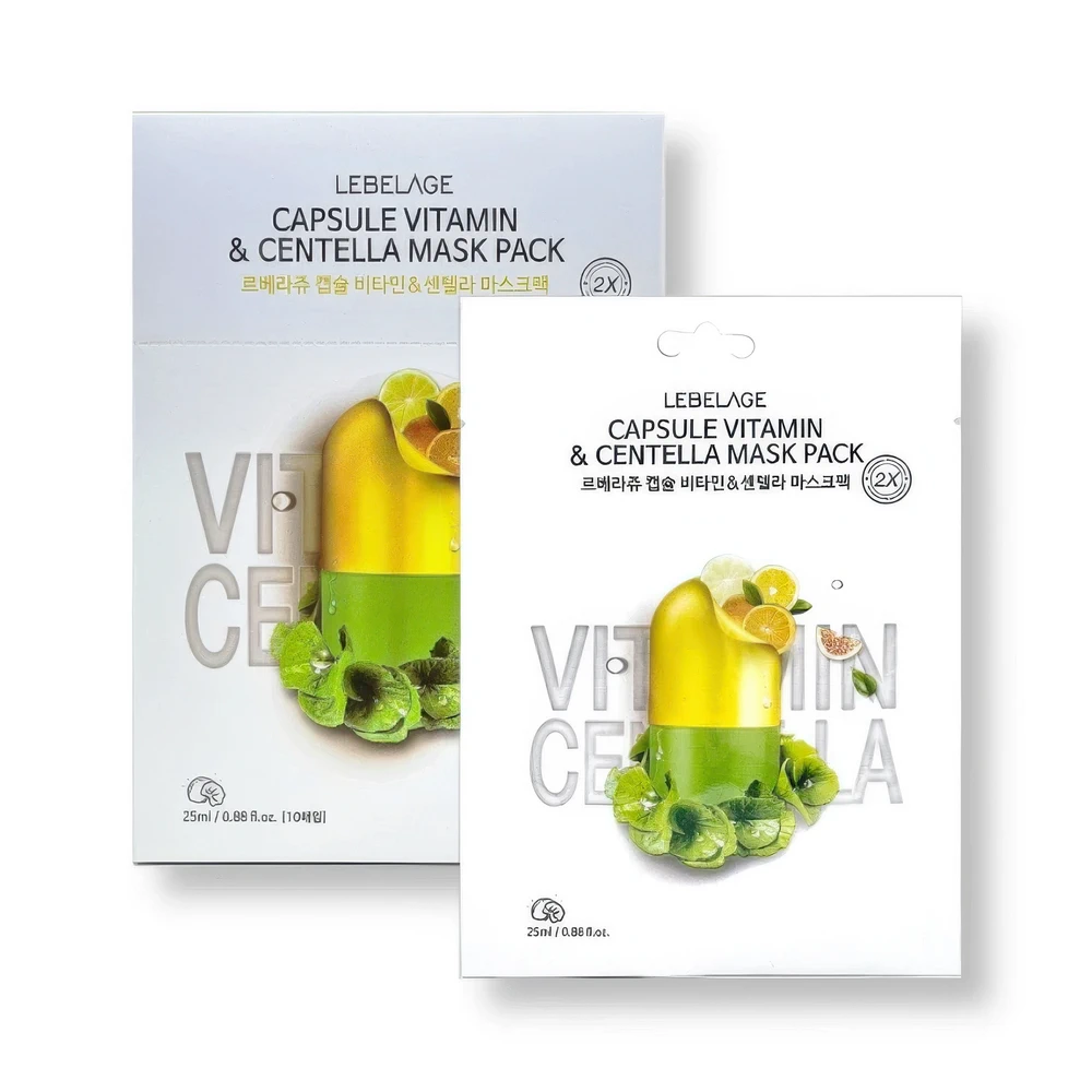 LEBELAGE Тканевая маска с витамином и центеллой CAPSULE VITAMIN&CENTELLA 2X MASK PACK